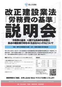 【国交省実施】 改正建設業法「労務費の基準」説明会の開催についてのお知らせ